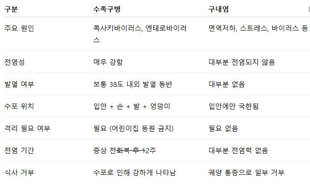 3. 수족구병vs 구내염 차이표 (한눈에 보기)
