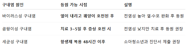 증상이 호전돼도 입안 궤양이 심하면 가정에서 추가 관찰 후 등원하는 것이 안전합니다.