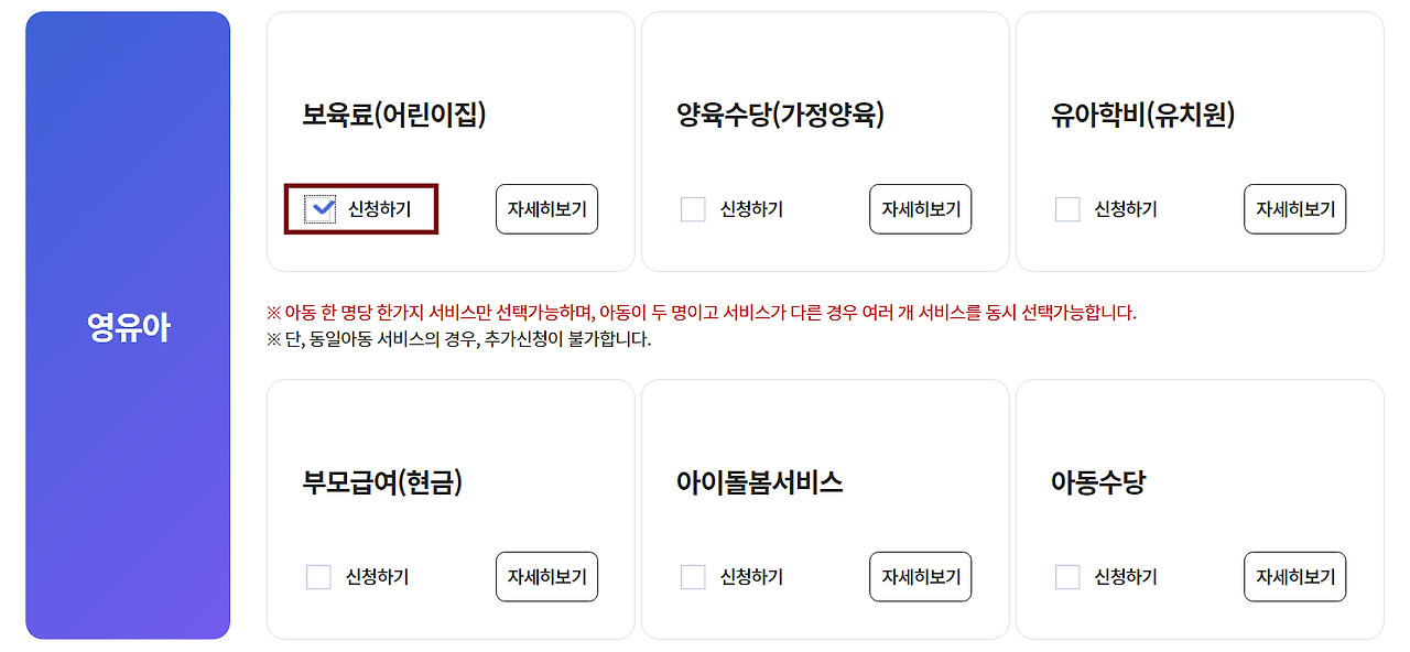 - 대상 서비스 : 어린이집 (0세 ~ 2세) 기본