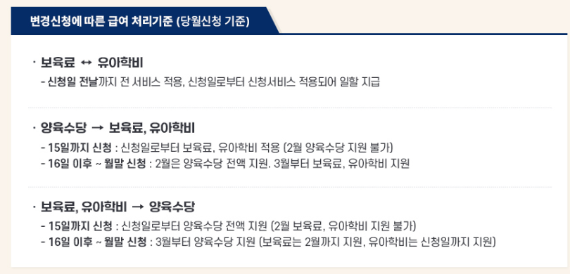 - 3월부터 가정양육으로 전환하는 경우 : 양육수당 사전신청