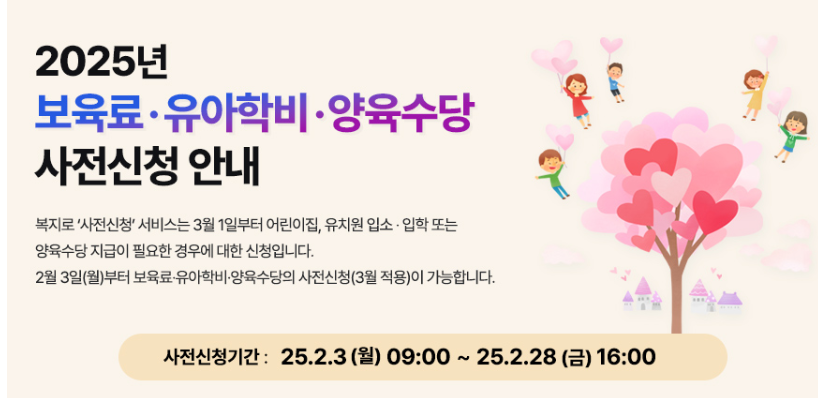 2025 영유아 보육서비스(보육료, 유아학비, 양육수당) 사전신청