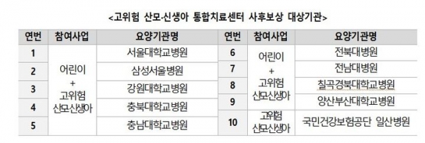 3. 고위험 산모, 신생아 통합치료센터 사후 보상 대상기관 10곳